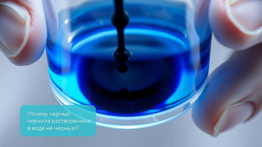 Короткий ответ: Потому что в воде черные чернила не растворяются, а диспергируются (распадаются на отдельные микроскопические частицы). Эти частицы настолько малы, что пропускают часть света, и мы видим не плотный черный цвет, а его оттенки — обычно серый, синий или коричневый.